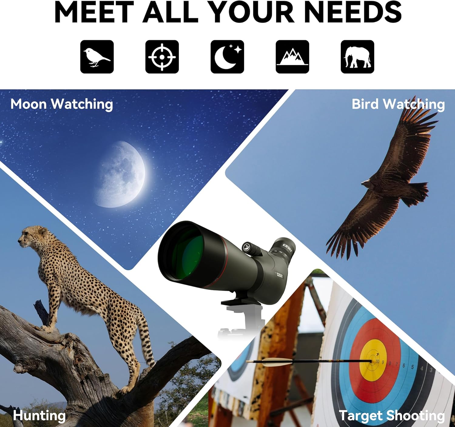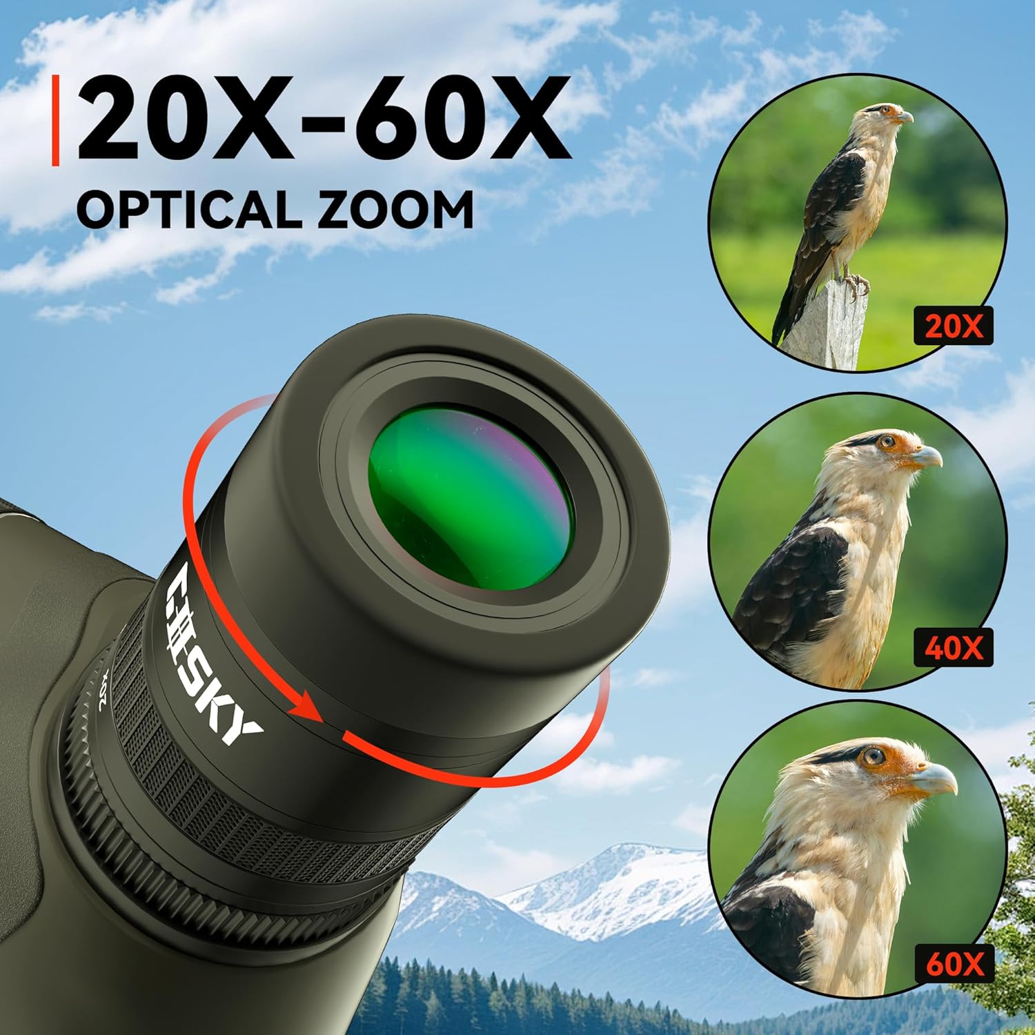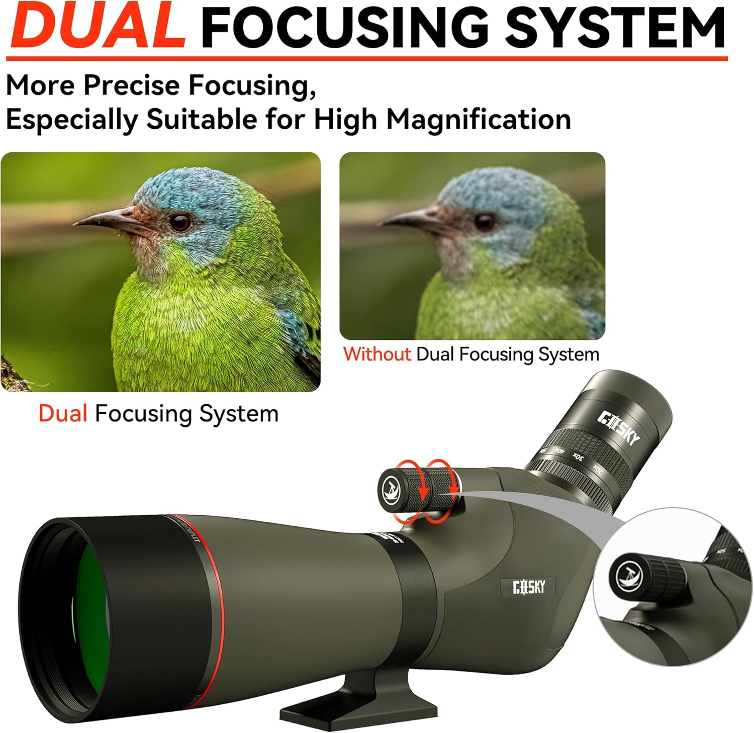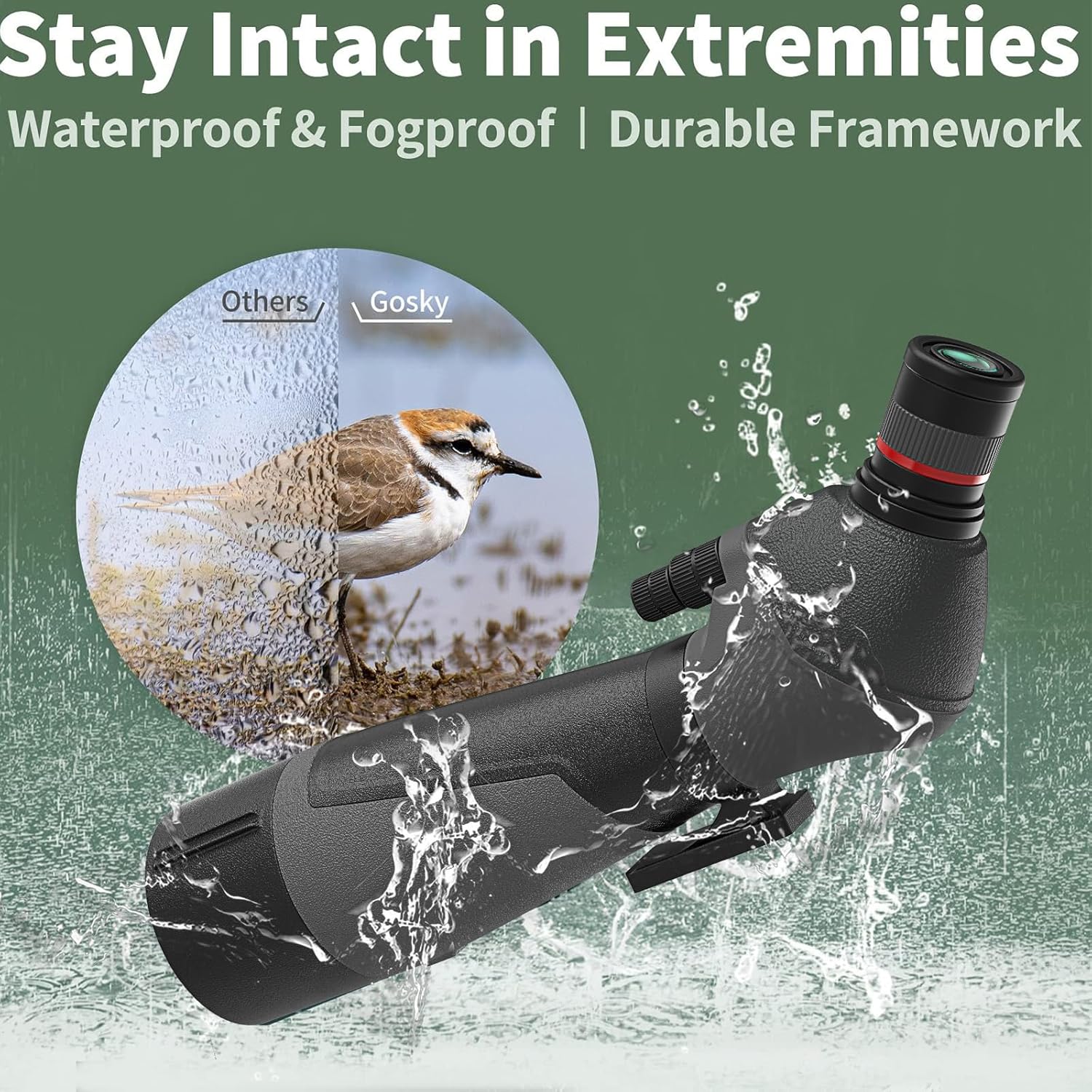 Gosky 20-60x80 Spotting Scope with Phone Adapter, Dual Focusing Waterproof Spotting Scopes for Target Shooting Bird Watching Hunting Wildlife Safari Viewing, BAK4 FMC Spotter Scope with Carrying Case